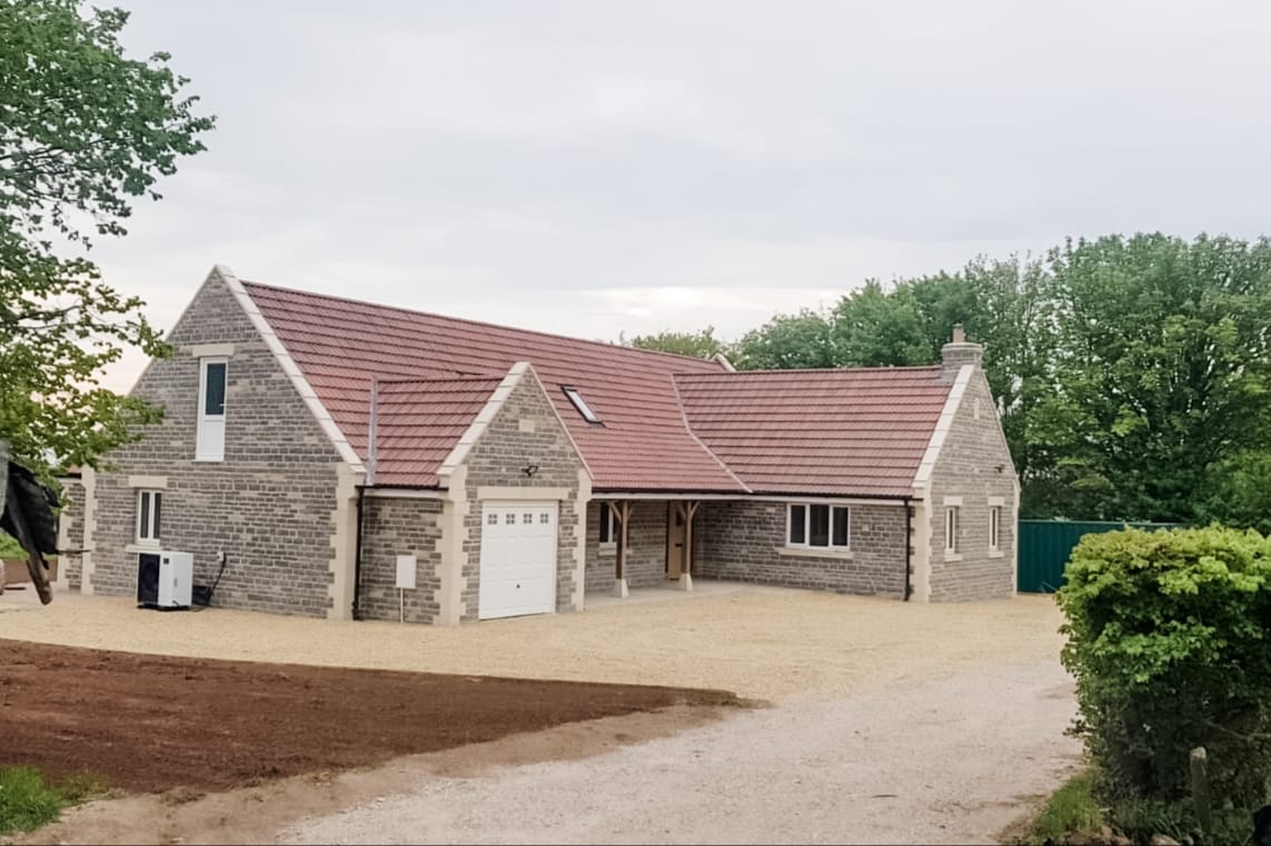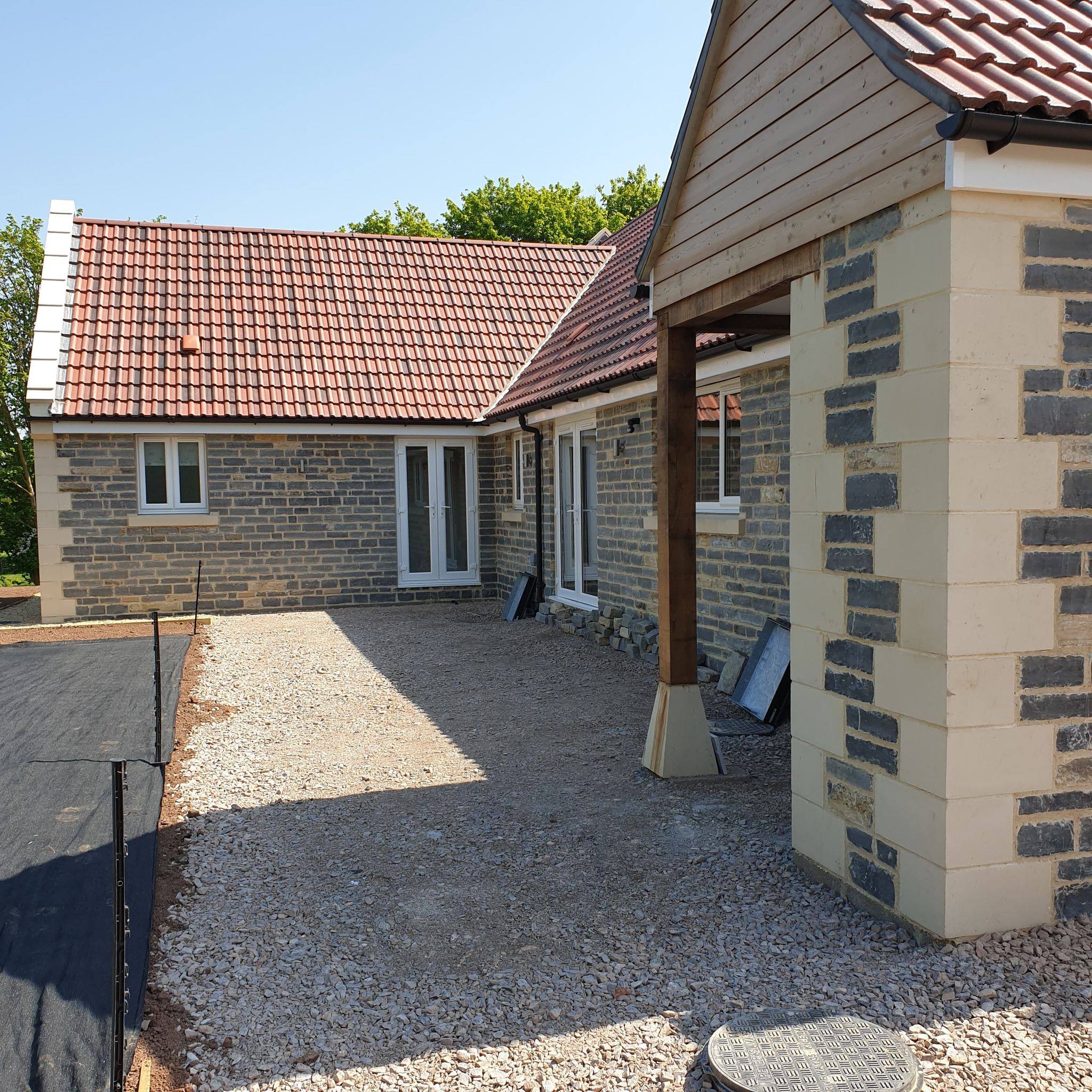 A large stone built bungalow in Street, nestled into the surroundings with landscaping that can be further developed by the clients.